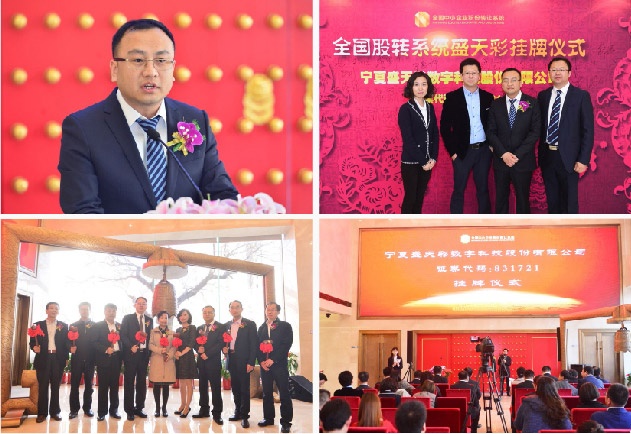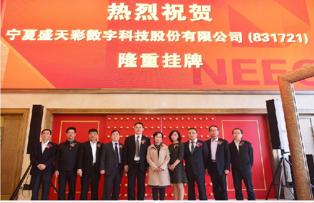 全國(guó)中小企業(yè)股份轉(zhuǎn)讓系統(tǒng)(俗稱“新三板”)在京舉行掛牌儀式,寧夏盛天彩數(shù)字科技股份有限公司新三板掛牌交易。